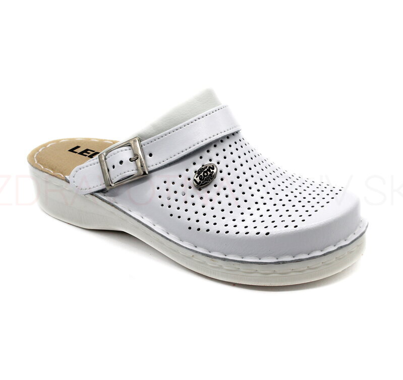 Dámska zdravotná obuv s plnou pevnou perforovanou špicou, čo zabezpečuje priedušnosť tejto obuvi. Na priehlavku je obuv doplnená remienkom s nastaviteľnou sponou aby sa mohla použiť aj ako sandále. Obuv je kožená s tvarovanou perforovanou stielkou z prírodnej kože, ktorá je priedušná a odvádza vlhkosť. Výplň stielky je pamäťová pena - podporujúca prirodzený tvar chodidla - na podporu priečnej a pozdĺžnej klenby - pre osoby s plochými nohami. Obuv má protišmykovú anti - shock podrážku, ktorá Vás ochráni pred pádom na mokrej podlahe. Podrážka má vynikajúce tlmiace vlastnosti a je vyrobená z pružného materiálu, ktorý tlmí nárazy a nerovnosti povrchu pri chôdzi. Šírka obuvi je F - užšia - vhodná pre užší priehlavok. Obuv má certifikát pracovnej obuvi. Obuv je vhodná aj pre osoby s Hallux Valgus (vybočený palec).
