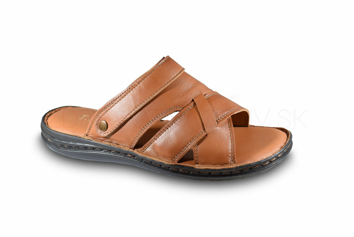 Pánska letná pohodlná, vzdušná obuv. Obuv je celokožená. Remienok je možné prispôsobiť vaším potrebám a použitiu, buď na priehlavku (šľapky) alebo na päte (sandále).