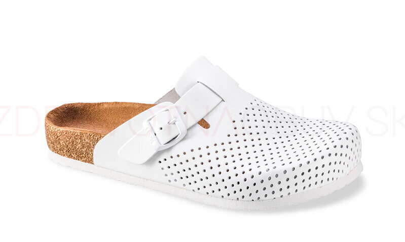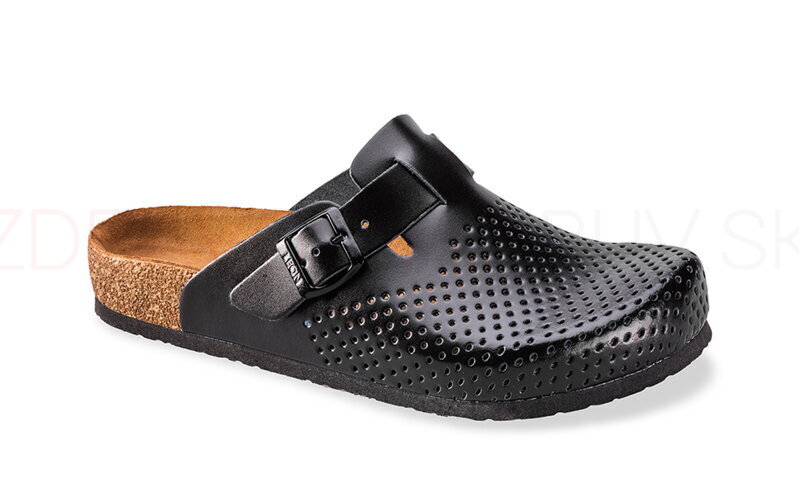 Pánska zdravotné vsuvky z prírodnej hladkej perforovanej kože. Na priehlavku je obuv doplnená nastaviteľným remienkom s kovovou prackou. Obuv má anatomicky tvarovanú stielku z prírodnej kože - semiš, ktorá je priedušná a odvádza vlhkosť. Výplň stielky tvorí korok - podporujúci prirodzený tvar chodidla - na podporu priečnej a pozdĺžnej klenby - pre osoby s plochými nohami. Obuv má protišmykovú anti - shock podrážku, ktorá Vás ochráni pred pádom na mokrej podlahe. Podrážka má vynikajúce tlmiace vlastnosti a je vyrobená z pružného materiálu, ktorý tlmí nárazy a nerovnosti povrchu pri chôdzi. Šírka obuvi je G/07 - štandardná, vhodná aj na vyšší priehlavok. Obuv je vhodná aj pre osoby s Hallux Valgus (vybočený palec).