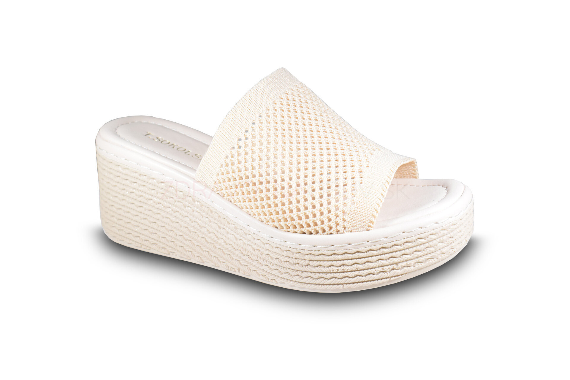 Pohodlná dámska letná obuv na platforme. Obuv má zvršok vyrobený z pevnej elastickej látky (sieťovina). Obuv je vhodná aj pre osoby s haluxami. Obuv je určená ako letná obuv ako aj ako obuv vhodná do interiéru.