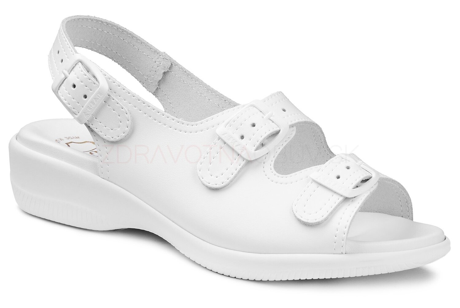 Anatomické dámske sandále na pohodlnej platforme. Zvršok je kožený s troma prackami, dokonale sa prispôsobuje chodidlu a tak zabezpečuje kvalitnú oporu zo všetkých strán. Stielka je mäkčená, anatomicky tvarovaná. Podošva je zvýšená, klinová s protišmykovou izolou.