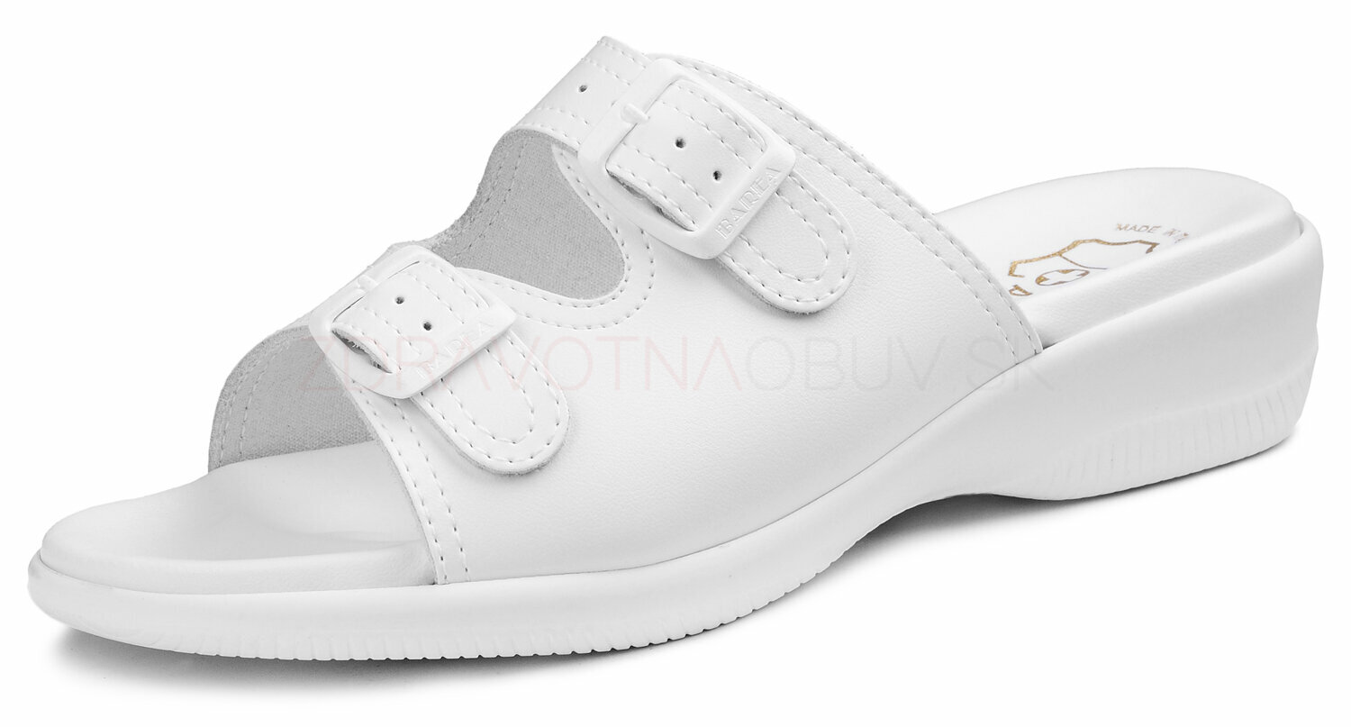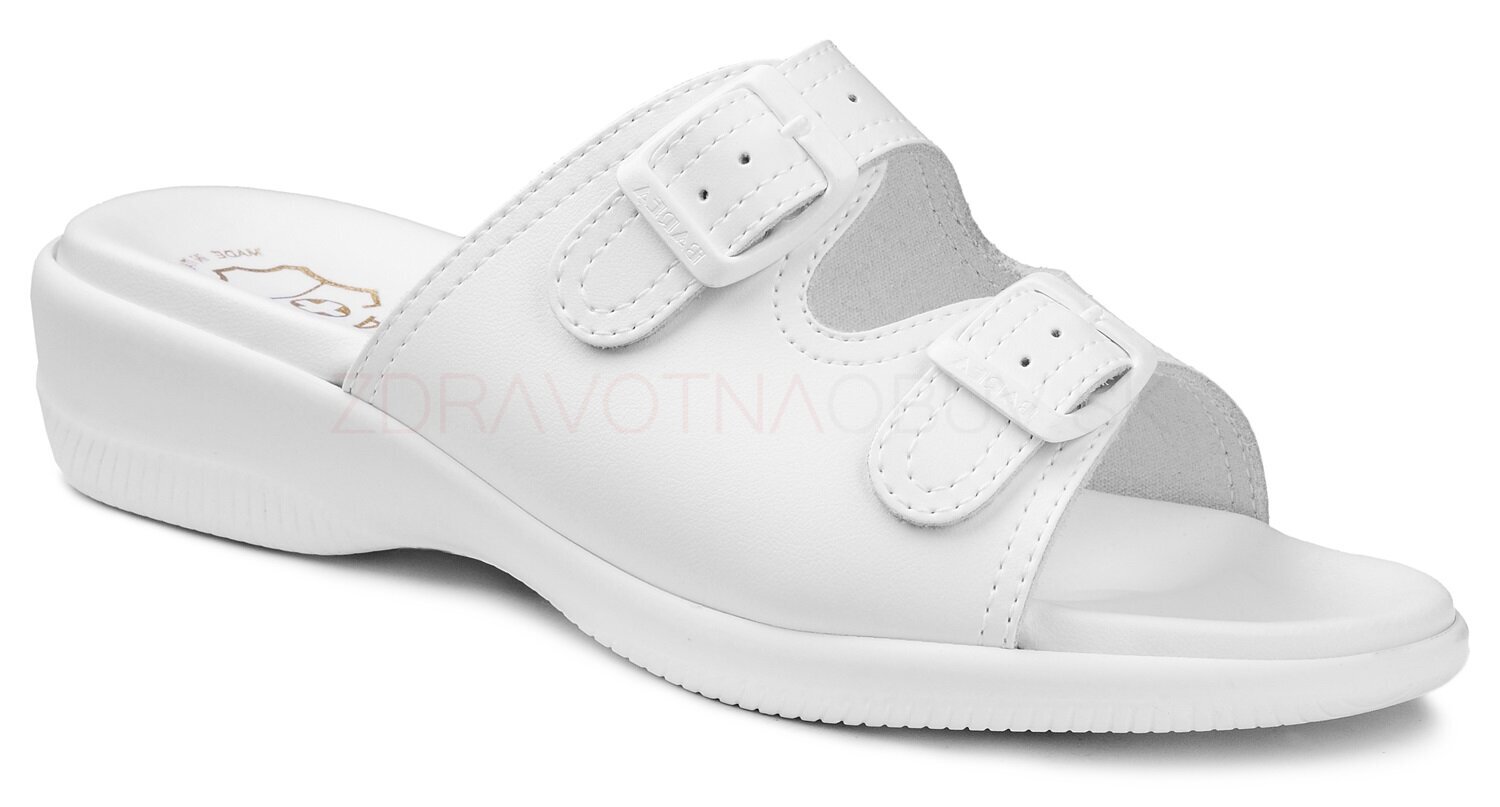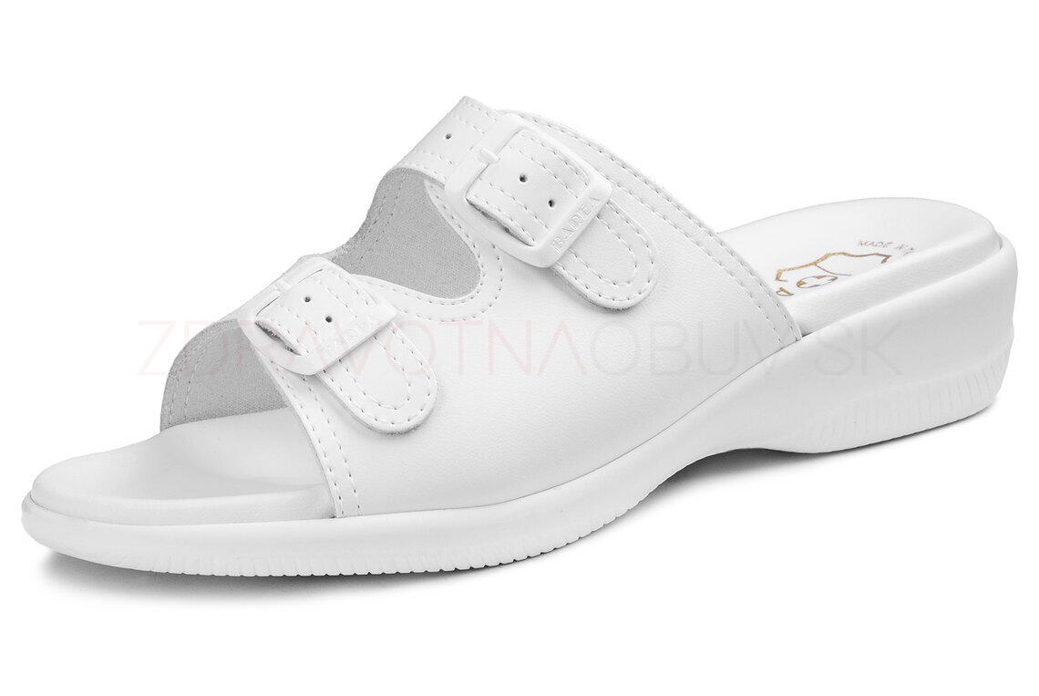 Anatomické dámske vsuvky na pohodlnej platforme. Zvršok je kožený s dvoma prackami. Stielka je mäkčená, anatomicky tvarovaná. Podošva je zvýšená, klinová s protišmykovou izolou.