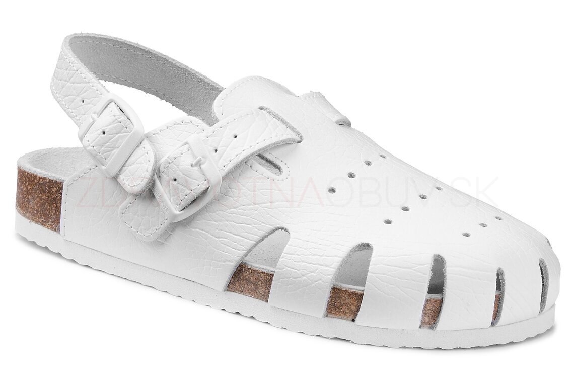 Celokožené ortopedické dámske sandále na pohodlnej platforme. Zvršok je dvojprackový kožený s uzatvorenou perforovanou špicou. Stielka je kožená, anatomická a tvarovaná. Podošva je rovná, vyrobená z tvrdeného styroporu.